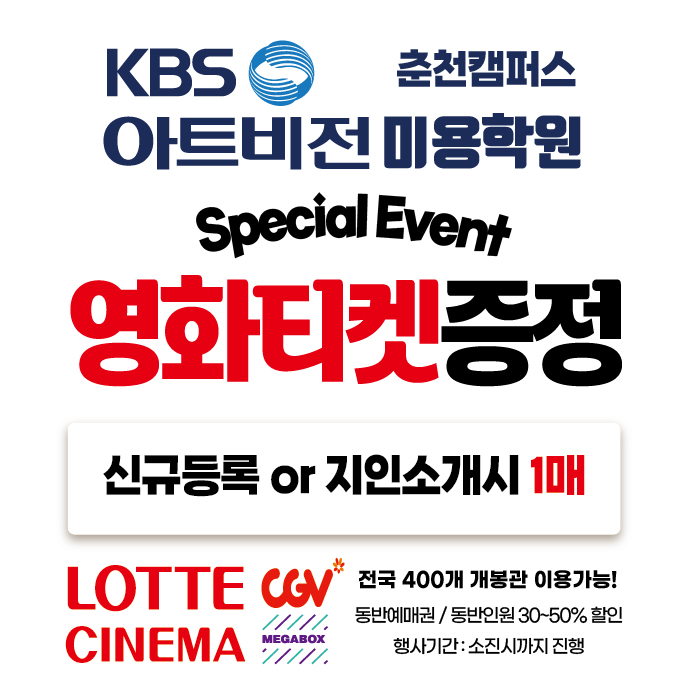 롯데시네마 / CGV / 메가박스 전국 400여 개관에서 사용 가능!