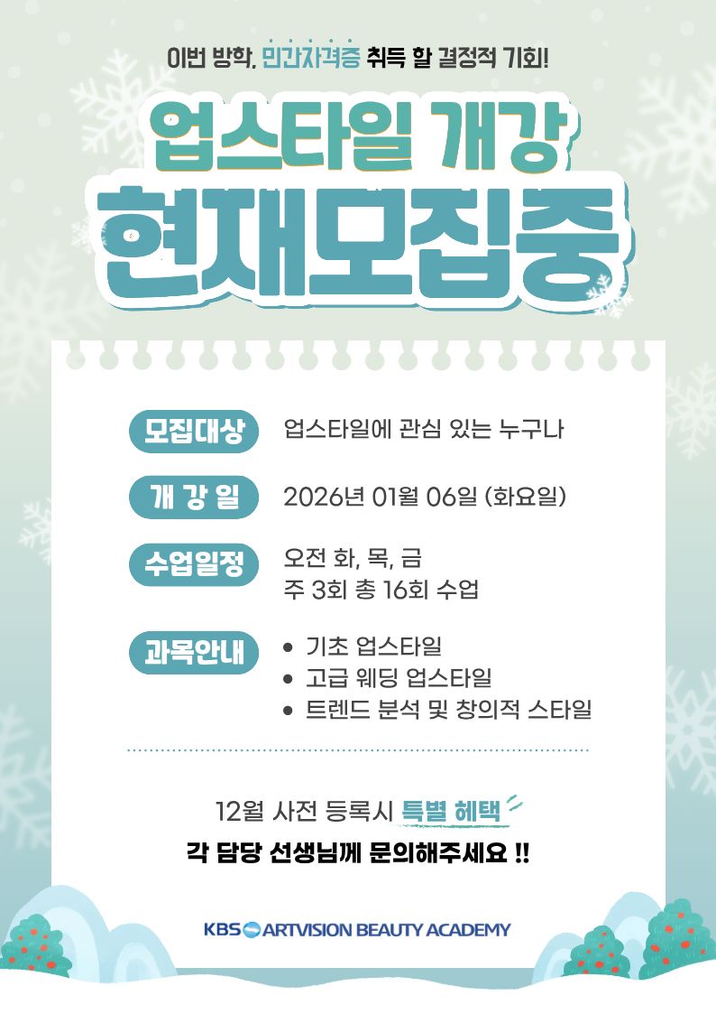 겨울방학 특강[업스타일 수업 개강안내] 1월 개강!