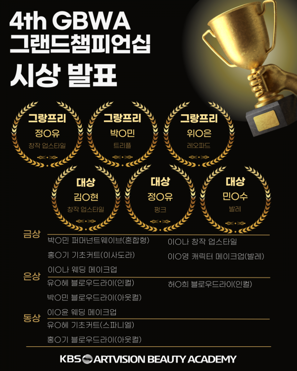 저희 KBS아트비전미용학원 춘천지점 수강생들이 공모전에 참여하여 뛰어난 성적을 거두고, 기다리던 원내 시상식이 진행되었습니다.