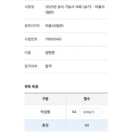 KBS아트비전미용학원의 자격증 합격자 명단 입니다.