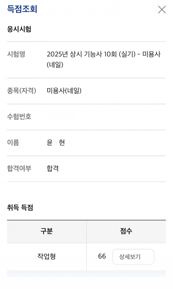 미용사(네일) 합격 페이지 정보 작성자 춘천캠퍼스 작성일25-06-04 16:42 조회301회 댓글0건 관련링크 이전글 다음글 목록 본문 . 댓글목록 등록된 댓글이 없습니다. 이전글 다음글 목록