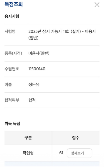 미용사(일반) 합격 페이지 정보 작성자 춘천캠퍼스 작성일25-07-03 10:14 조회241회 댓글0건 관련링크 이전글 다음글 목록 본문 . 댓글목록 등록된 댓글이 없습니다. 이전글 다음글 목록