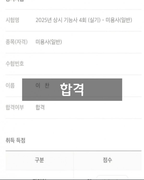 미용사(일반) 합격 페이지 정보 작성자 춘천캠퍼스 작성일25-03-20 16:24 조회237회 댓글0건 관련링크 이전글 다음글 목록 본문 . 댓글목록 등록된 댓글이 없습니다. 이전글 다음글 목록