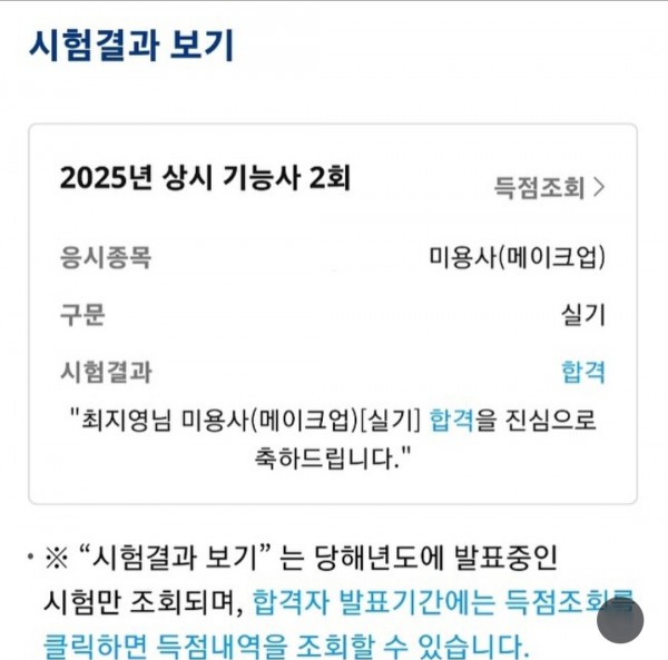 미용사(메이크업) 합격 페이지 정보 작성자 춘천캠퍼스 작성일25-02-20 16:17 조회338회 댓글0건 관련링크 이전글 다음글 목록 본문 . 댓글목록 등록된 댓글이 없습니다. 이전글 다음글 목록
