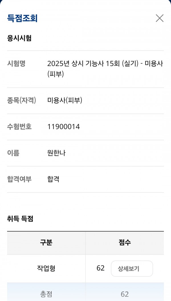 미용사(피부) 합격 페이지 정보 작성자 춘천캠퍼스 작성일25-08-28 13:56 조회290회 댓글0건 관련링크 이전글 다음글 목록 본문 . 댓글목록 등록된 댓글이 없습니다. 이전글 다음글 목록