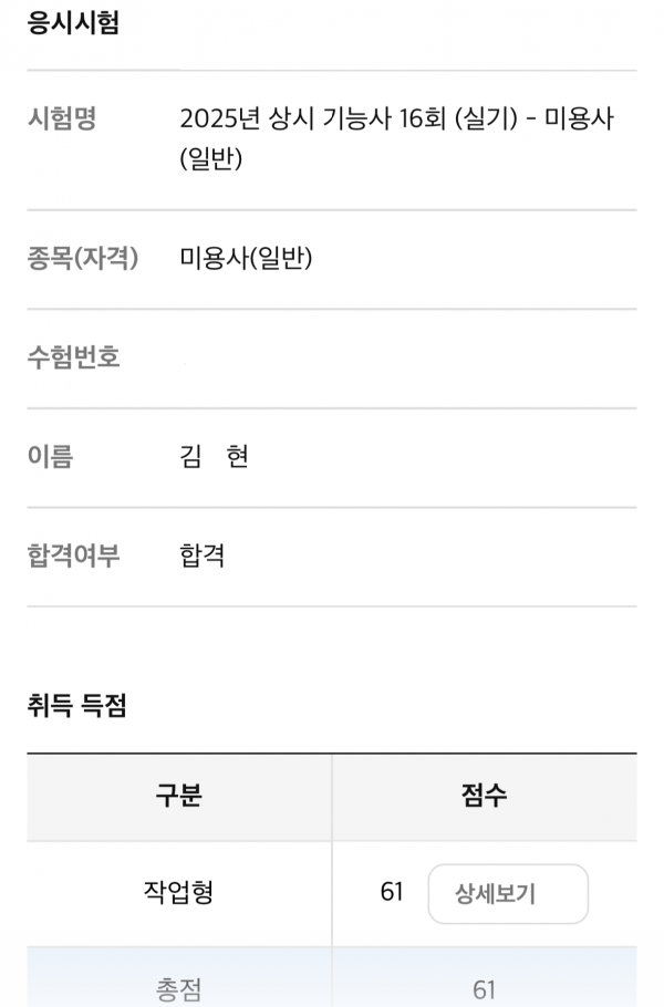 미용사(일반) 합격 페이지 정보 작성자 춘천캠퍼스 작성일25-09-18 13:14 조회268회 댓글0건 관련링크 이전글 다음글 목록 본문 . 댓글목록 등록된 댓글이 없습니다. 이전글 다음글 목록