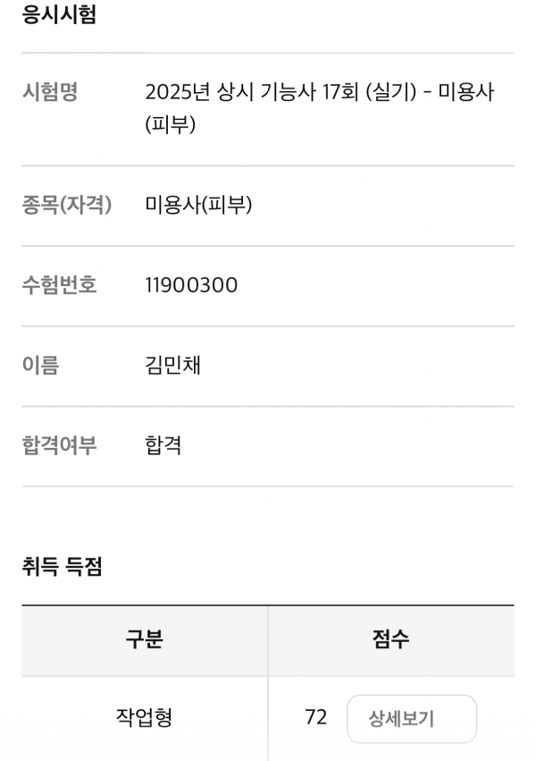 미용사(피부) 합격 페이지 정보 작성자 춘천캠퍼스 작성일25-09-25 12:32 조회296회 댓글0건 관련링크 이전글 다음글 목록 본문 . 댓글목록 등록된 댓글이 없습니다. 이전글 다음글 목록