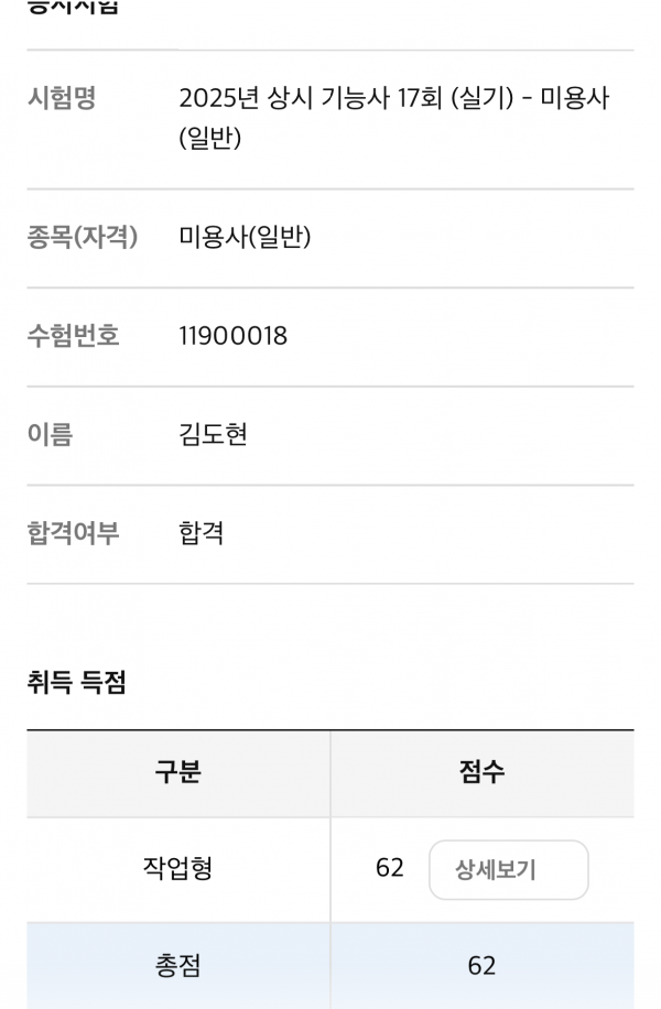 미용사(일반) 합격 페이지 정보 작성자 춘천캠퍼스 작성일25-09-25 12:32 조회256회 댓글0건 관련링크 이전글 다음글 목록 본문 . 댓글목록 등록된 댓글이 없습니다. 이전글 다음글 목록
