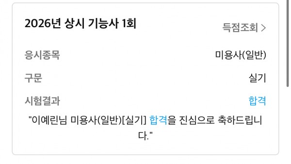 헤어국가자격증 원패스 페이지 정보 작성자 춘천캠퍼스 작성일26-03-30 15:46 조회153회 댓글0건 관련링크 이전글 다음글 목록 본문 원패스 합격 축하해주세용:) 댓글목록 등록된 댓글이 없습니다. 이전글 다음글 목록
