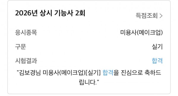 메이크업 원패스 합격 페이지 정보 작성자 춘천캠퍼스 작성일26-03-30 15:49 조회244회 댓글0건 관련링크 이전글 다음글 목록 본문 원패스 합격 축하해주세용:) 댓글목록 등록된 댓글이 없습니다. 이전글 다음글 목록