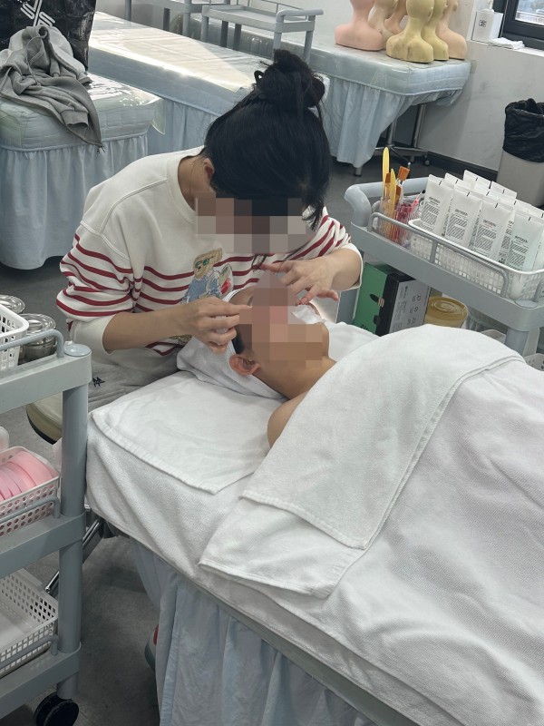 수강생들은 강사의 시연 후, 클렌징·딥클렌징·각질 관리·매뉴얼 테크닉·마스크 적용까지 국가자격시험 기준 프로토콜에 따라 반복 실습을 진행했습니다.